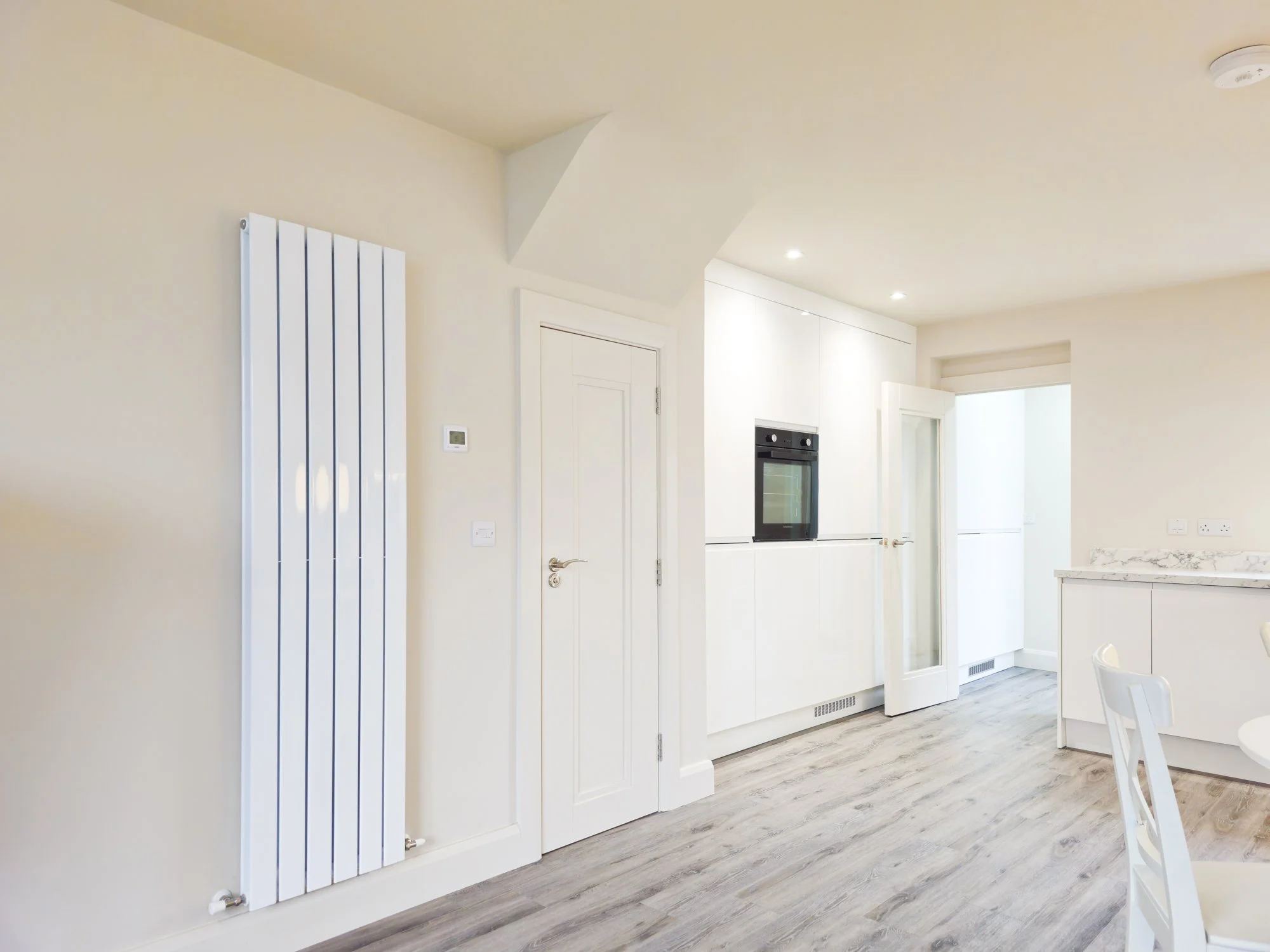 KORE installed a 4.4kW Mitsubishi EcoDan air-to-water heat pump, providing heating via a renewable source, eliminating the use of fossil fuels, while decreasing carbon emissions. New radiators and heating controls were installed throughout the home.